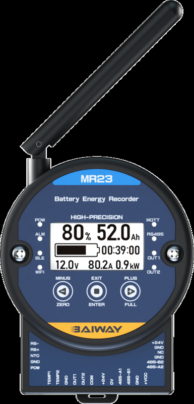 The MR23 module is designed to collect various battery parameters and record comprehensive battery status information, including real-time data, historical data, and cumulative data. Real-time data encompasses voltage, current, capacity, SOC, power, remaining time, etc., which can be displayed directly on the module's built-in screen. Historical data includes periodic peak values, cycle counts, and periodic charge/discharge capacities. With built-in storage, the module saves collected data locally, eliminating concerns about short-term data transmission interruptions.